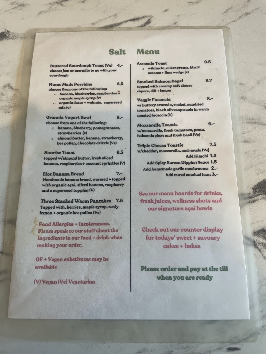 Salt Broadstairs offers a simple, comforting café menu designed for easy, casual dining throughout the day. Whether you're stopping by for a relaxed breakfast, a light lunch, or a mid-afternoon coffee break, the menu features familiar, well-prepared choices that fit naturally with the calm and welcoming atmosphere of the space.